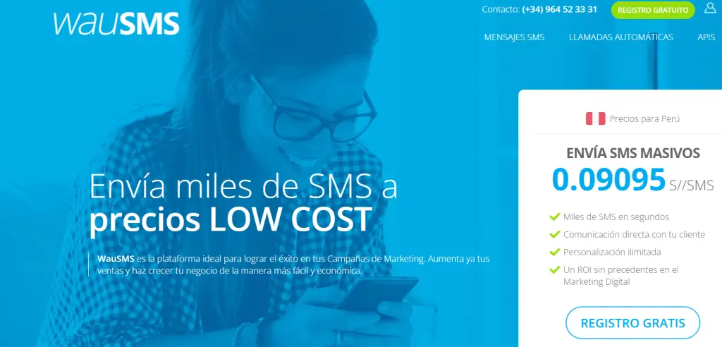 Miles de SMS masivos a precios low cost. Así se describe Wausms, un proveedor de mensajes masivos en España con cobertura global que garantiza envíos de alta calidad a precios bajos. Con ellos es posible enviar campañas de SMS Marketing sin límite de envío a partir de €0.11125 por SMS, ya sea si eres una empresa o institución pública/privada.