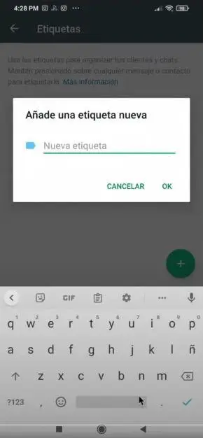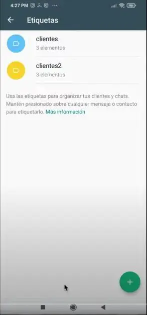 - Para añadir tus propias etiquetas, haz clic en el botón de la esquina inferior derecha con el signo de (+).